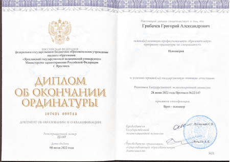 - Ординатура, специальность «Психиатрия-наркология» в ЯГМУ. 2020-2022г.